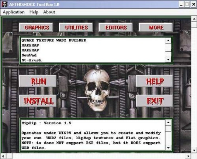 The front-end for the Aftershock Toolbox. Made for Windows 95, incompatible with 64-bit Operating Systems.