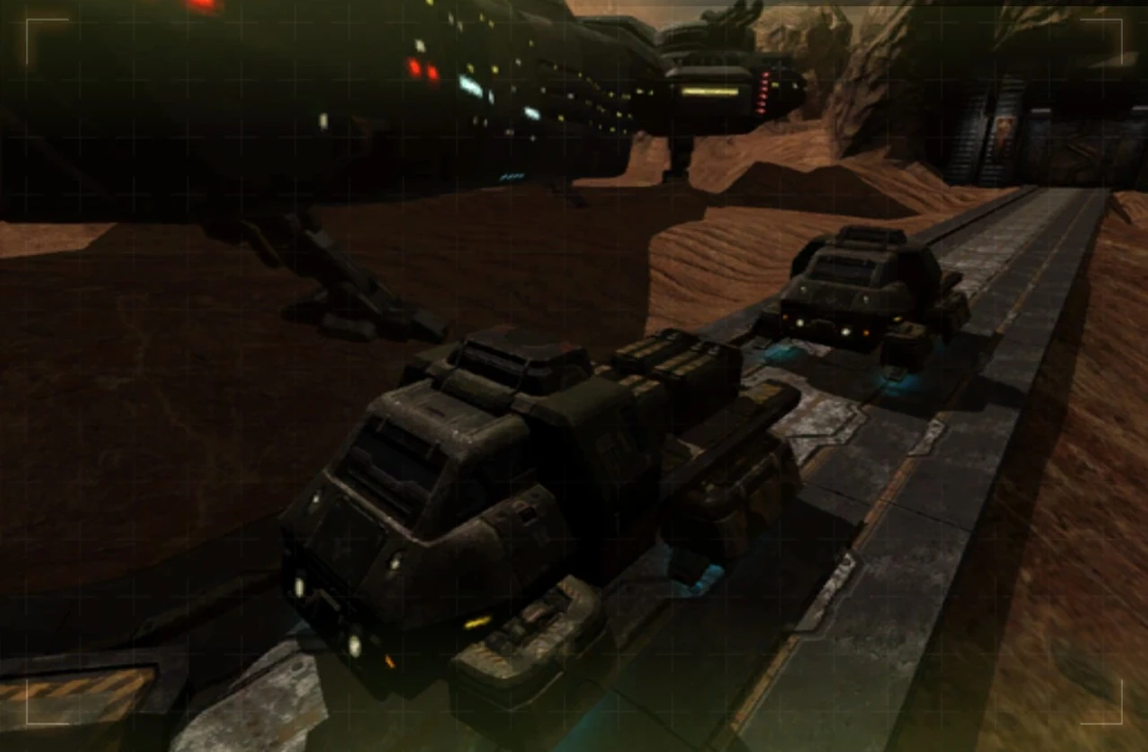 After the trucks get to checkpoint one, feel free to talk to the marines, then meet up with Sergeant Bidwell. Hop on the truck that's next to Bidwell, and take a ride down to the Hub. At this point, you have to kill the enemies, because the truck has health bar now, use the mounted gun to kill any of the Stroggs and Turrets you'll find along the way, target the turret first, because it will do the most damage. Once the truck reaches a group of 4 land mines, Rhodes heads out of a truck and tries to disable them. Protect Rhodes from the incoming Grunts and Berserkers, and keep protecting him until he's done and heads back to his truck, shoot the one who is the closest to him, if he take too much hits the mission fails. Although the enemies will also damage the truck you are on, defend Rhodes is more important, aim for the head and chest for quicker killing.