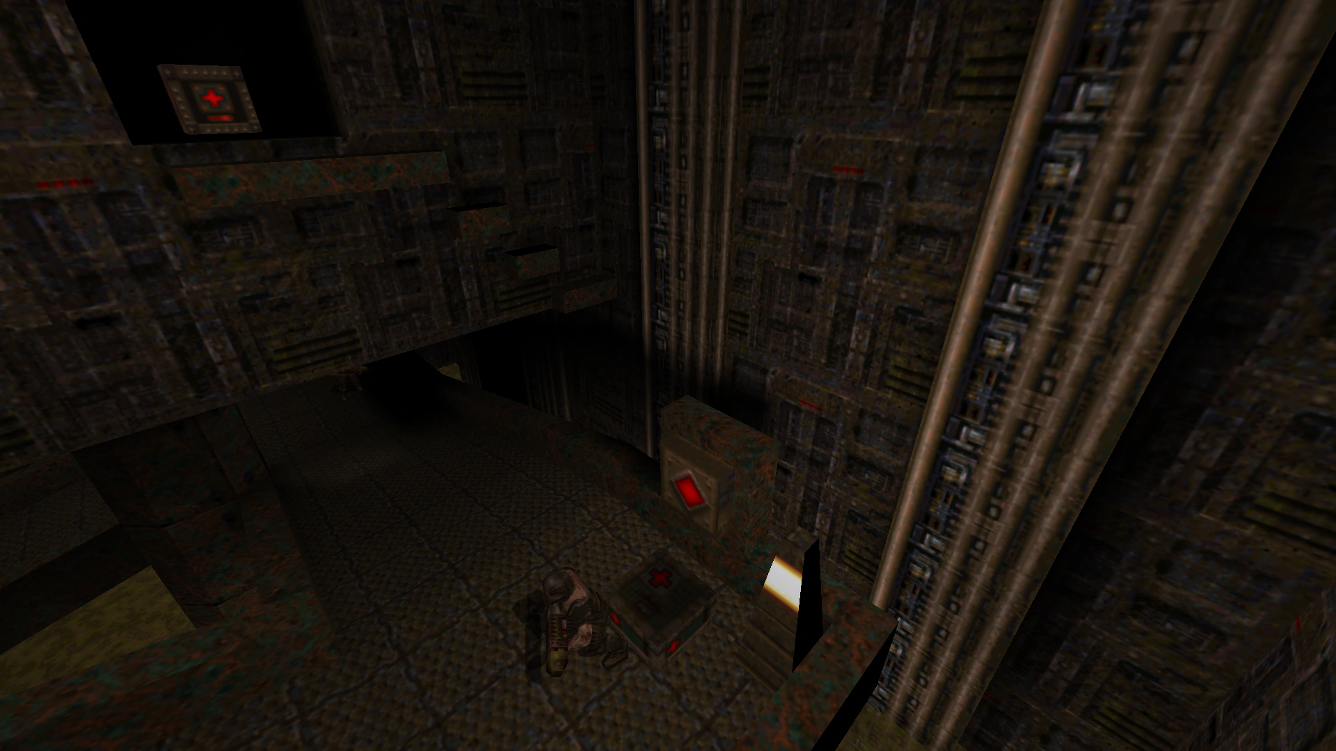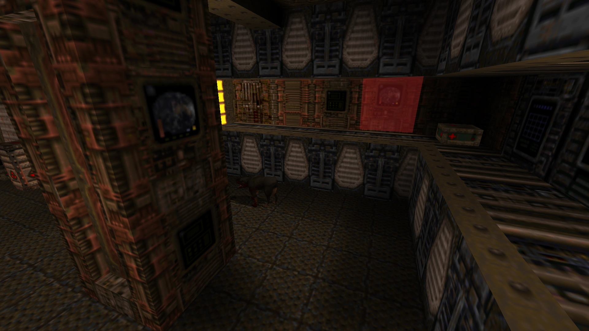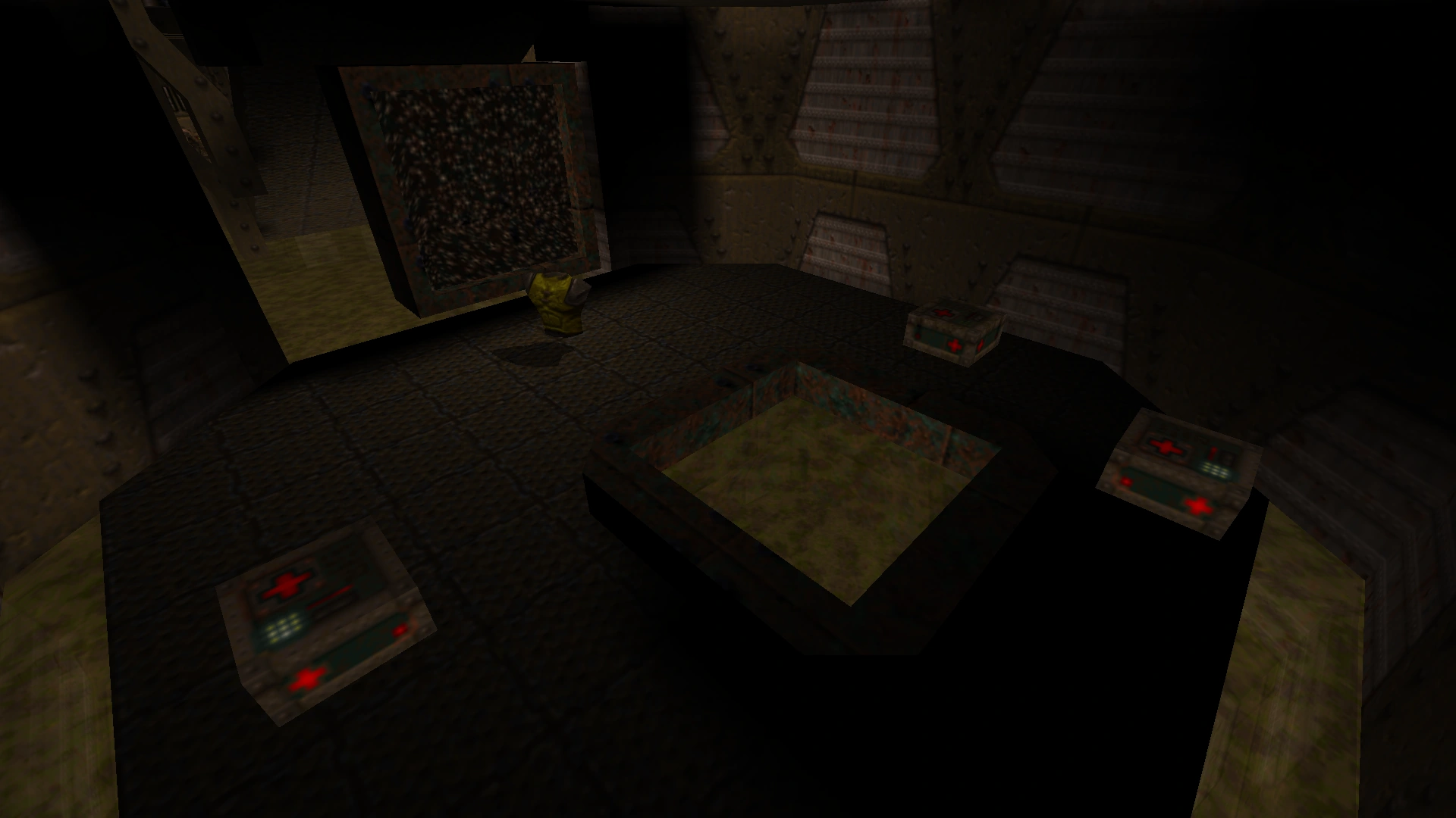- No Quad Damage in (#3). Instead, the Yellow Armor is located here, which means there was none located in (#6). The Quad Damage is located in the exit room, meaning the player would need to kill most opponents to reach it.