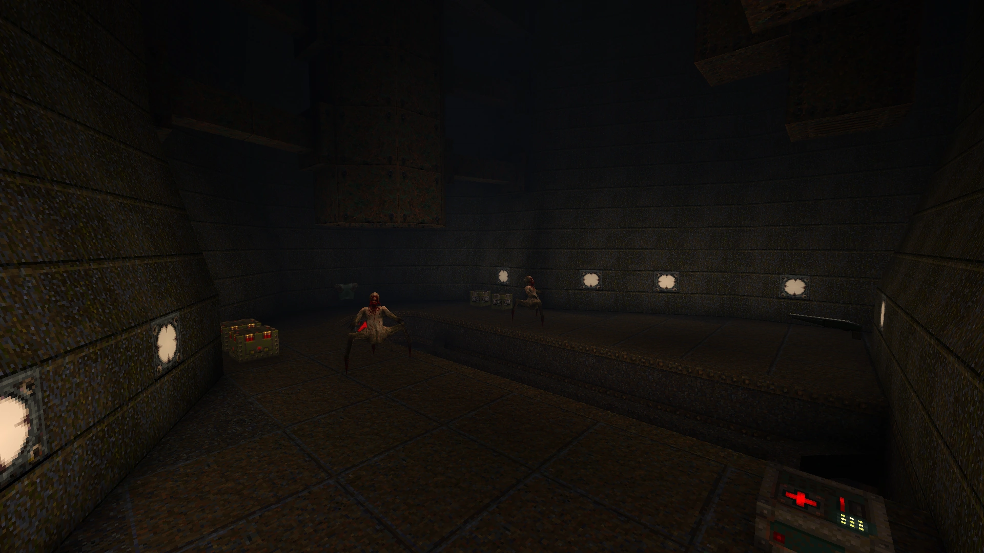 - #2) When you fall out of the second wind tunnel into the corridor with the golden key, there is a Quad Damage right behind you. Collecting it counts as secret.