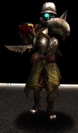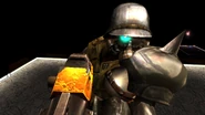 Fritzkrieg is a playable character and the first Tournament challenge player faces in Quake III: Team Arena. Players face him at the House of Decay map.