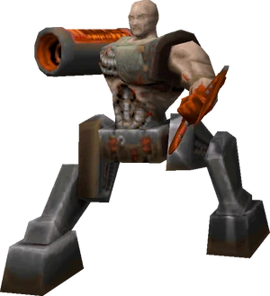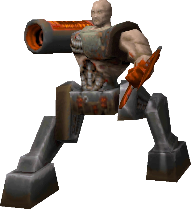 The Gladiator is an enemy encountered in Quake II. It is one of the more powerful Strogg. The Gladiator is a humanoid cyborg battle machine with a powerful shoulder-mounted railgun and a giant clamp for close range attacks. The Gladiator is fast moving and possesses armor above that of the Gunner, Iron Maiden and Berserker but not as good as the likes of the Tank and the Tank Commander.