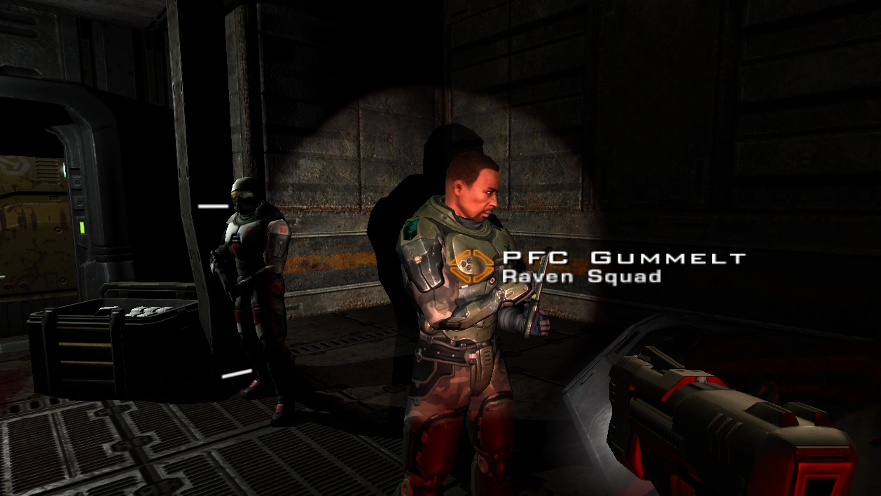 Private First Class Gummelt is a character featured in Quake IV. He is a member of Raven Squad in the Space Marine Corps and participates in the Second Invasion of Stroggos.