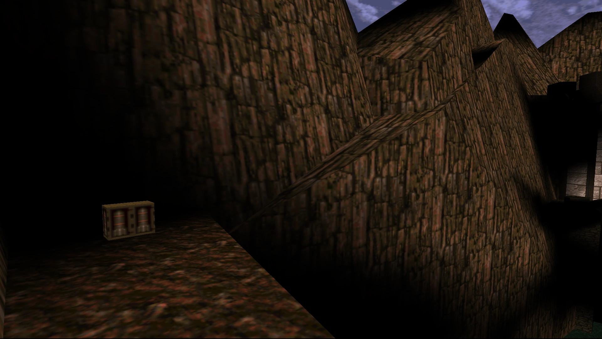 From the roof of (#2), jump to the ledge along the cliff to collect more Rockets and trigger another secret. If you go further and keep climbing along the cliff, you will eventually find a very thin ledge: if you can walk along it, you can sequence-break the map and directly reach the top of the tower with the silver key, triggering a message that reads "You're not supposed to be here!" |