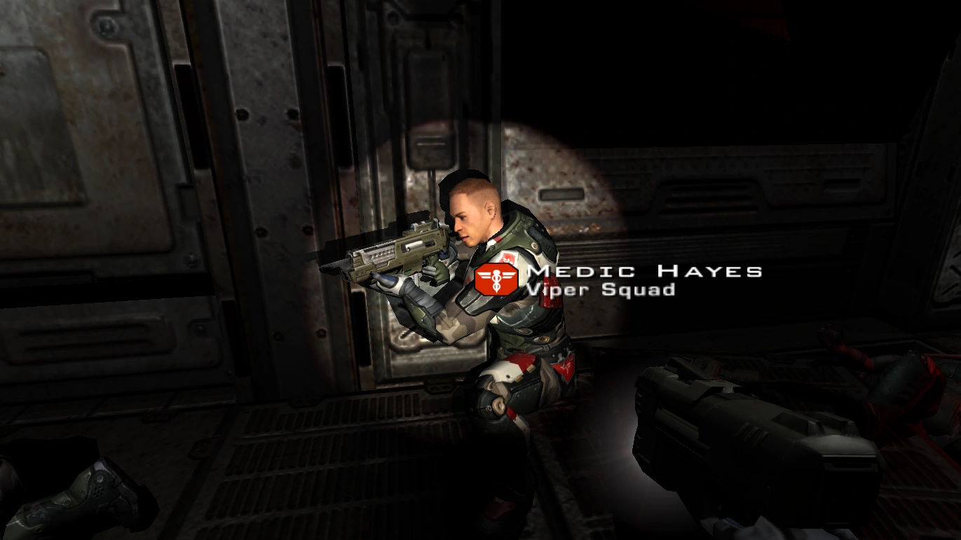 Medic Hayes is a character featured in Quake IV. He is a member of Viper Squad in the Space Marine Corps and participates in the Second Invasion of Stroggos.