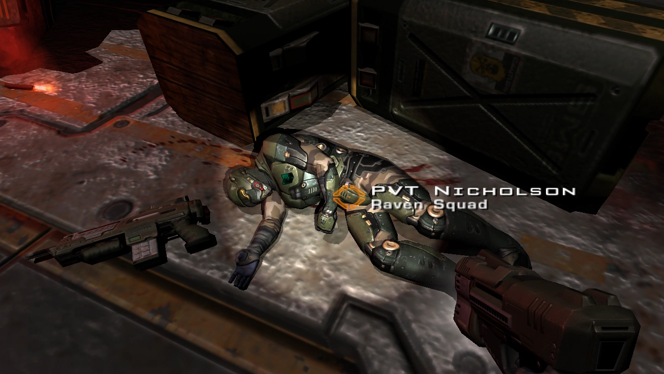 Private Nicholson is a character featured in Quake IV. He is a member of Raven Squad in the Space Marine Corps and participates in the Second Invasion of Stroggos.