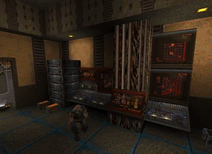 The Outer Hangar is a smaller support facility to the Strogg hangar complex. It seems to deal primarily with incoming and outgoing cargo or passengers.