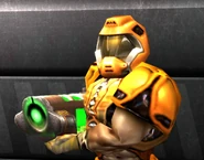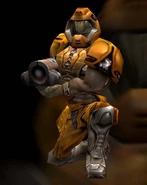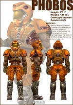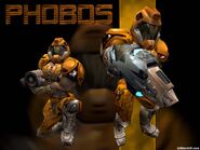 Captain Eldon "Phobos" Brock appears in and is a playable character in Quake III Arena. He is the third bot to be played against 1-on-1. Phobos is harder than the previous encounter with Ranger and if he sees you he will engage on lower difficulties. As difficulty goes higher you can notice him using small weapon combos on you by swapping them to deal maximum possible damage regarding range.