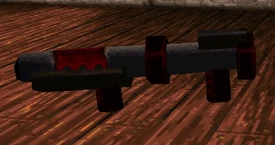The Proximity Launcher, (also can be called the Proximity Gun or Mine Launcher) is a Weapon that was introduced in and is only available to Scourge of Armagon for Quake. It appears as a red colored Grenade Launcher. It launches proximity mines which will only explode if an Enemy or the player gets near them. Its grenades also stick to walls and ceilings. The Proximity Gun shares ammo with the Grenade Launcher and the Rocket Launcher. The lifespan of a proximity mine is somewhat random but never lasts longer than one minute.