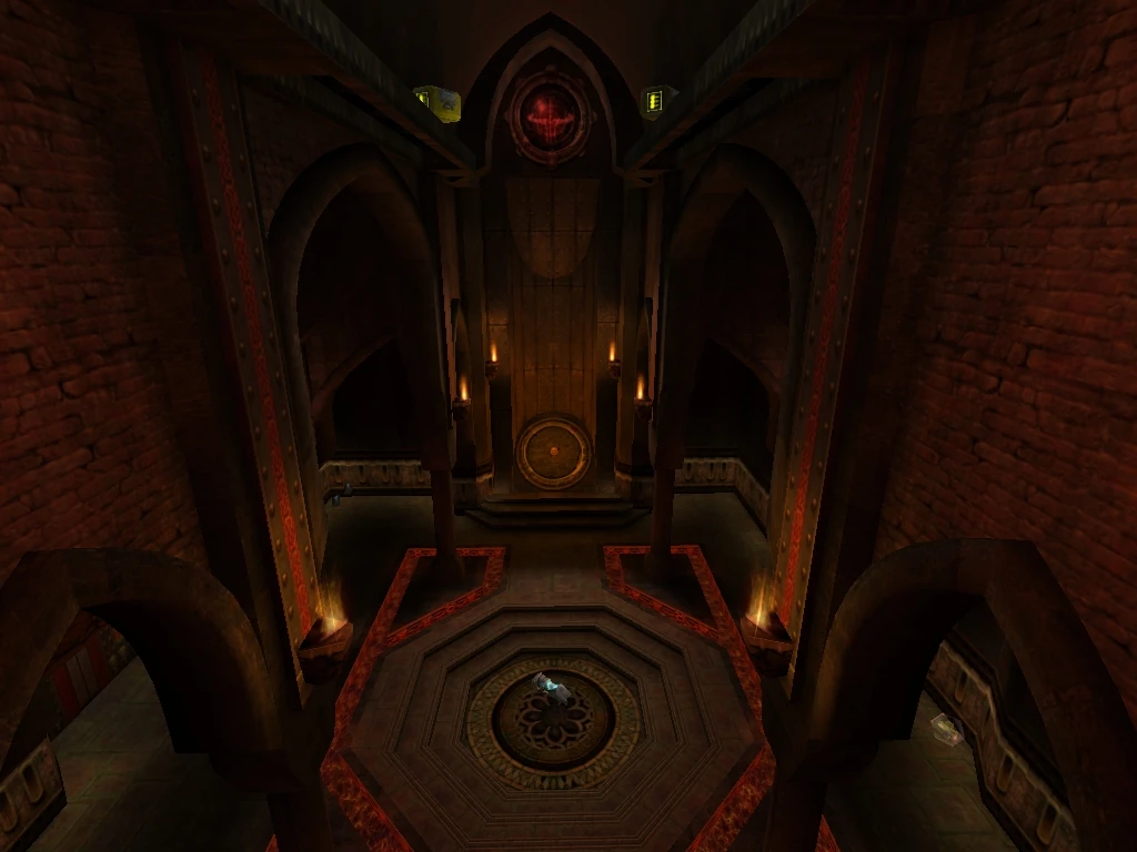 First map to introduce Invisibility power-up. First map to introduce a rather deep body of water and ankle high fog. Although hard to notice, second map to feature a reflective mirror surface.