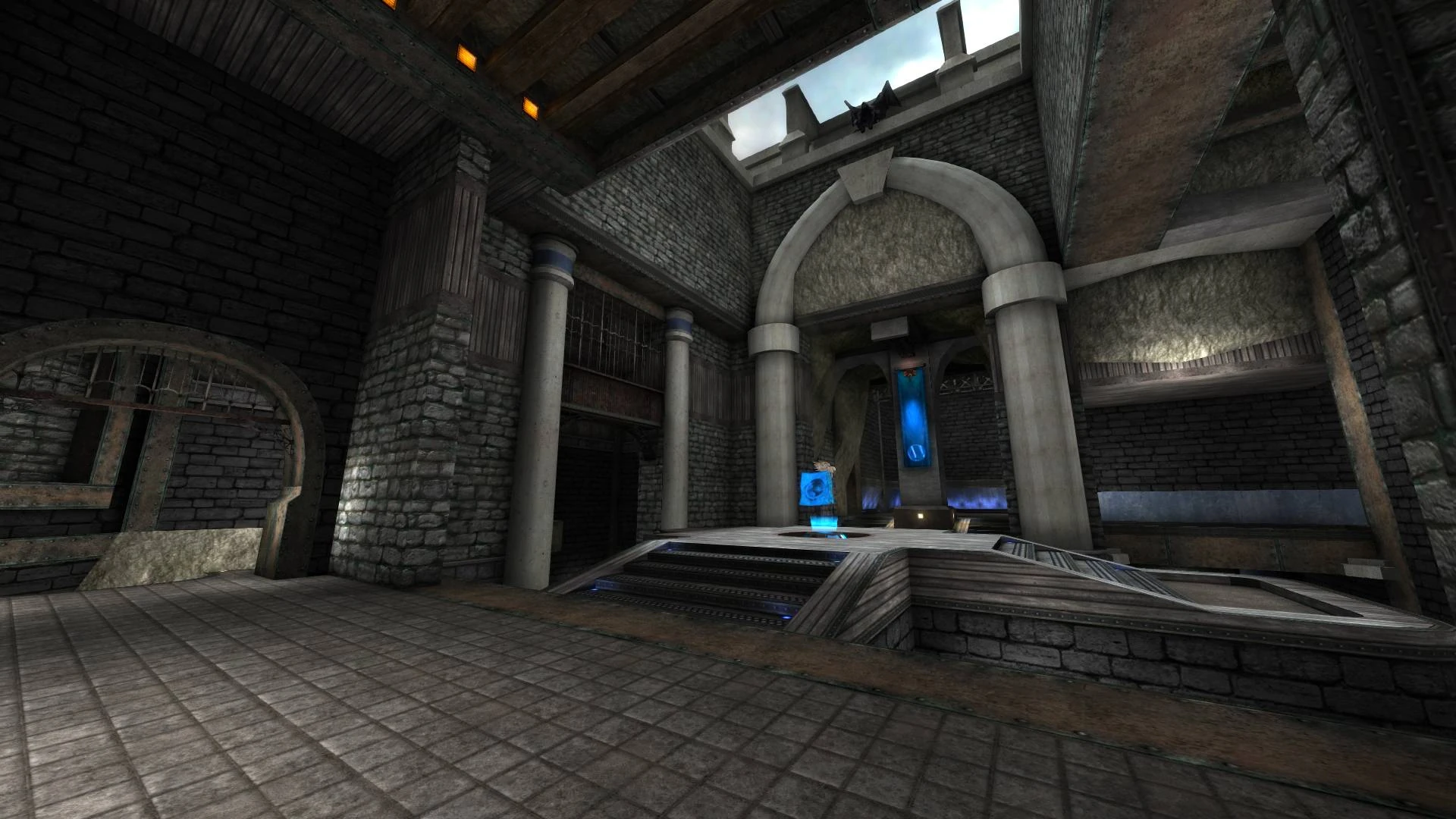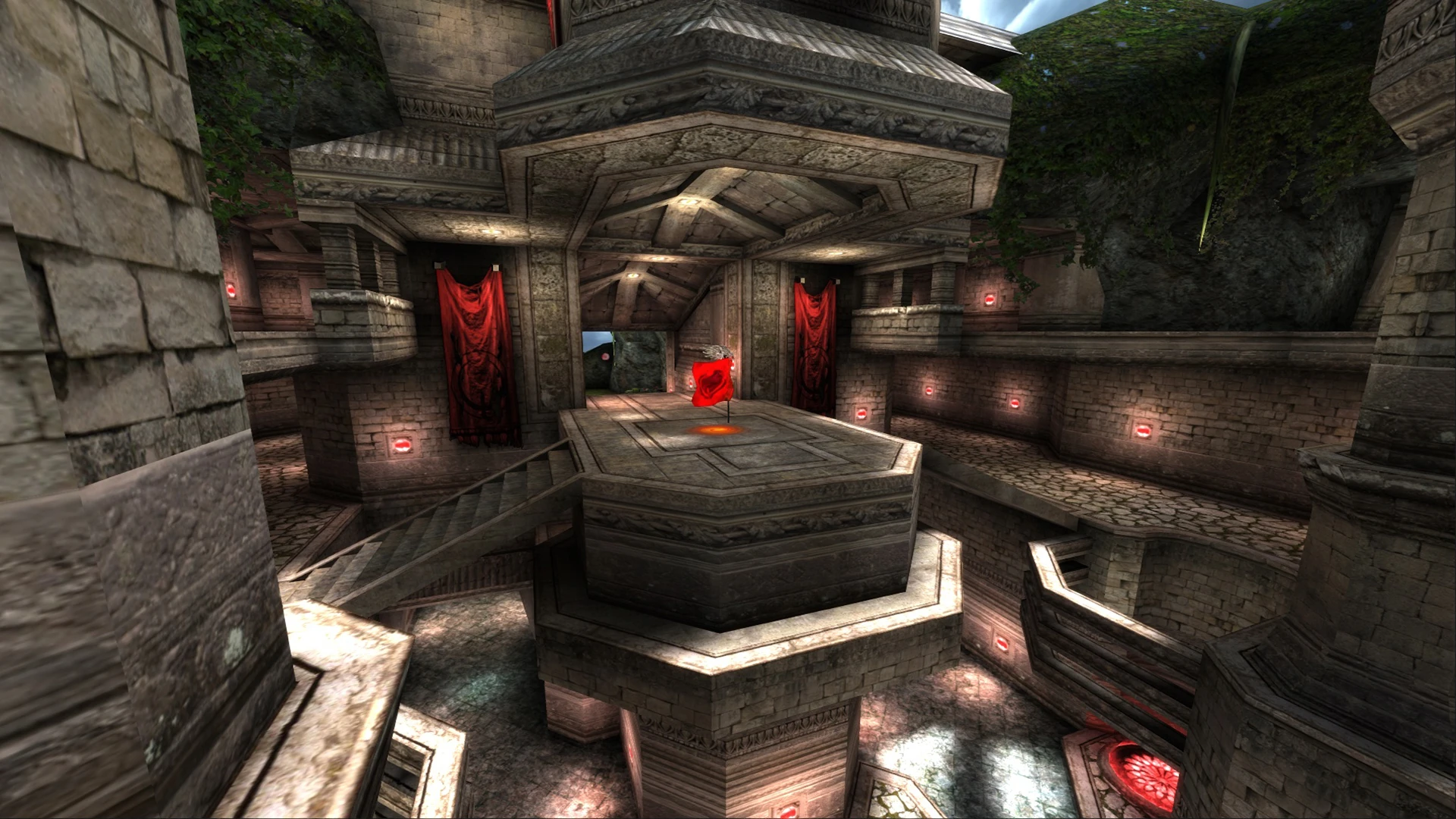 A Neutral Flag spawns in the middle of 2 team bases, it should be captured for a score at the enemy base flag post. Pickups are available and teams must gather their own share before organizing and attack like in classic CTF.