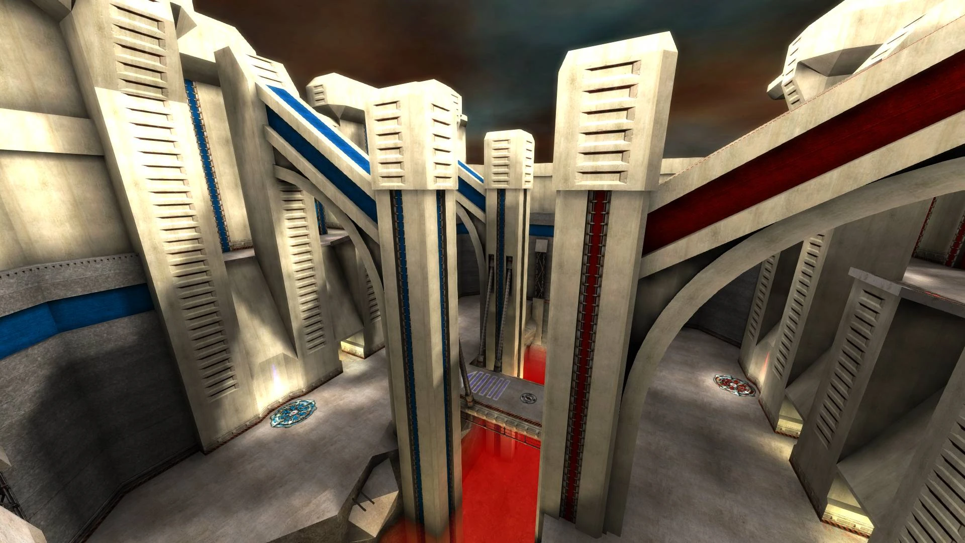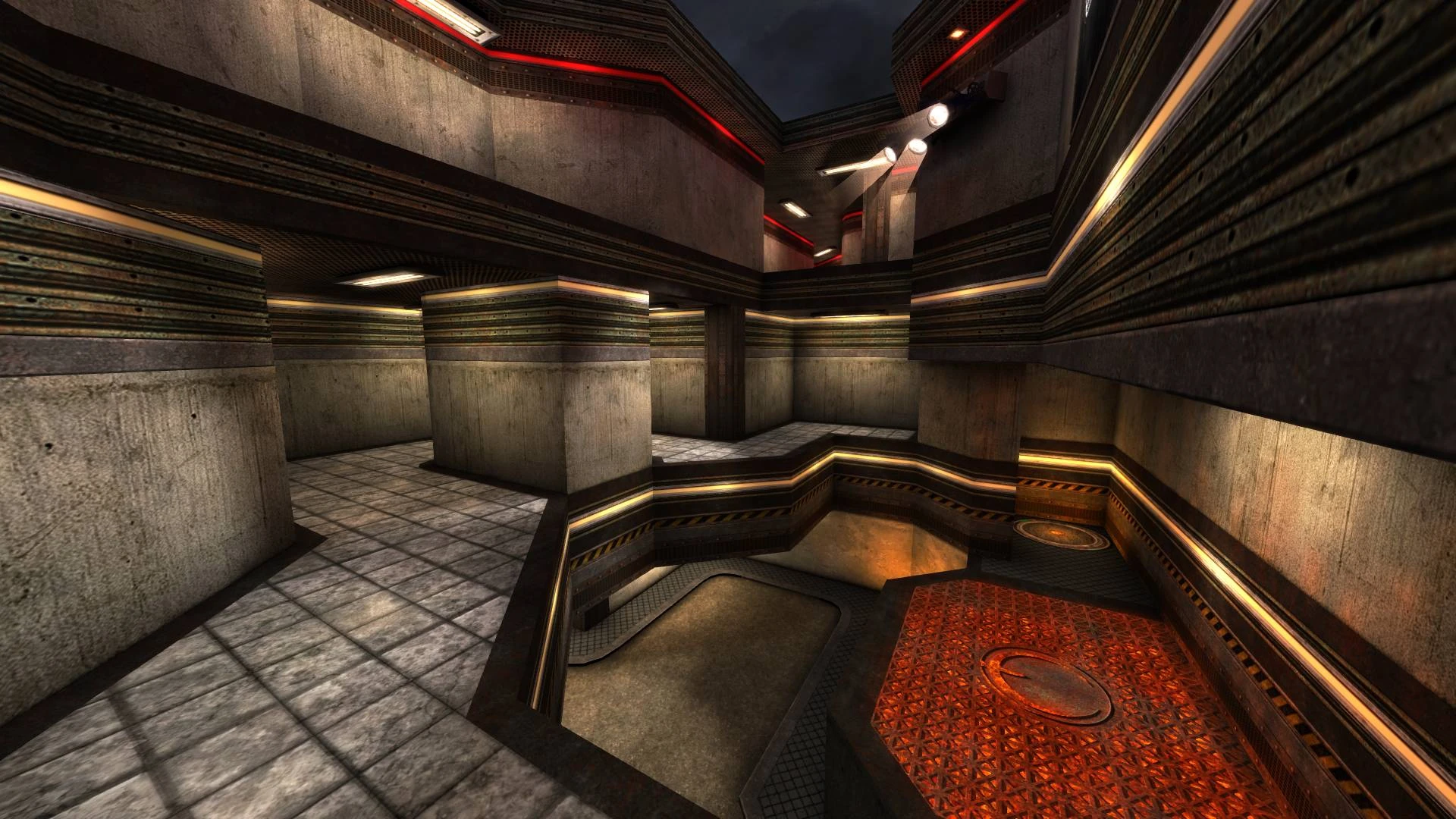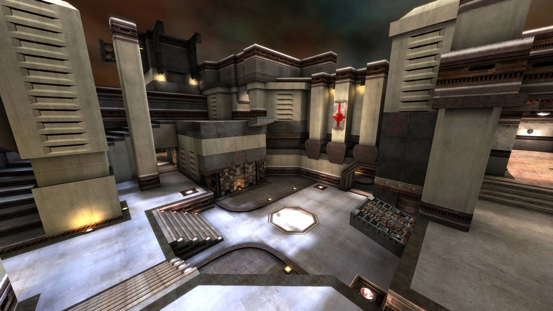 Maps have neutral command points layout, two team fight over the control of the area. Teams must hold a series of command points to score. Pickups removed throughly from the map. Each player only picks 1 starter weapon out of 6 available beside their standard Gauntlet and spawn stocked with 100 health and 100 armor.