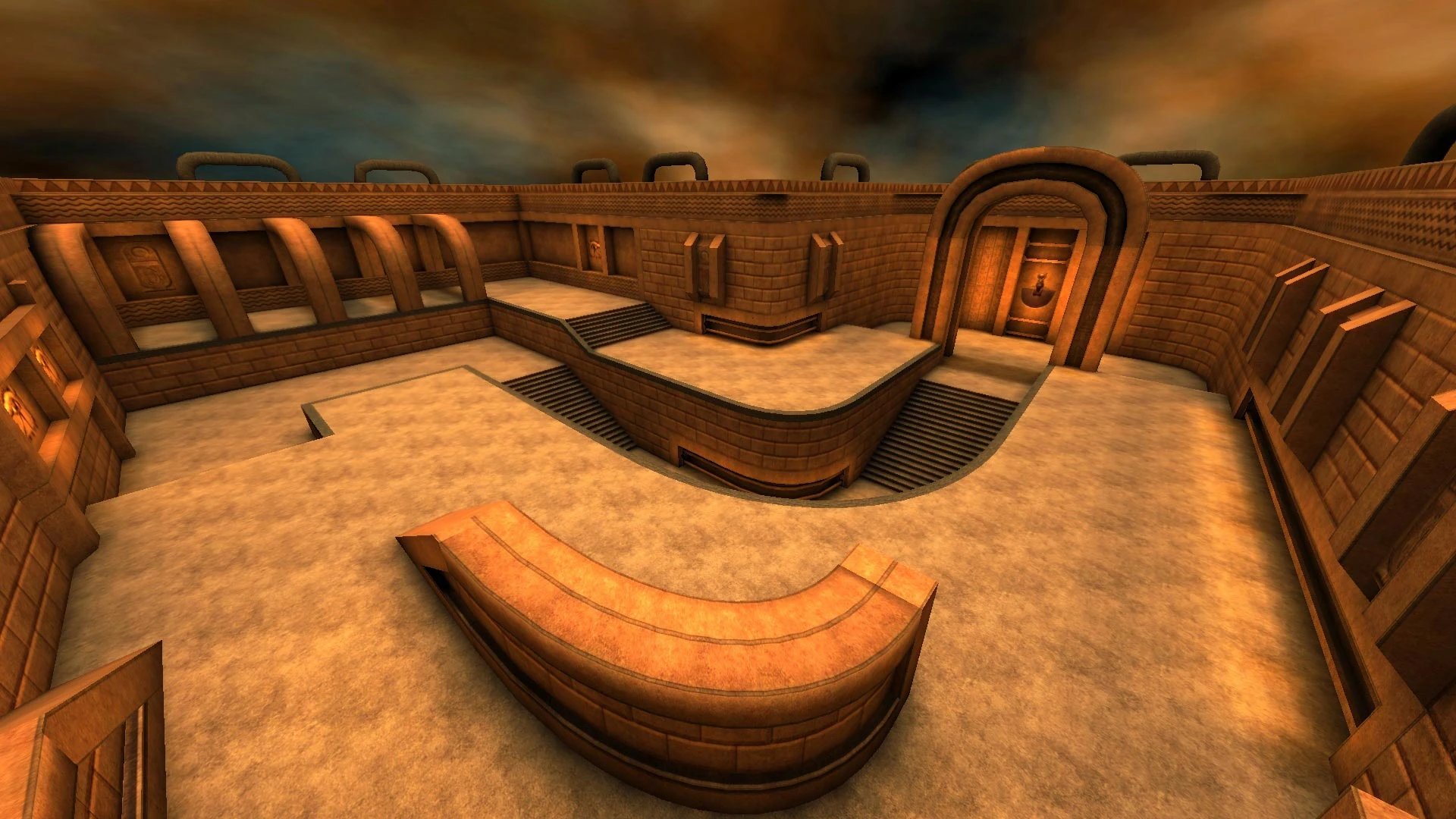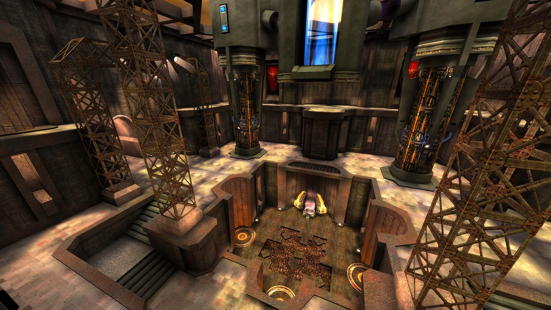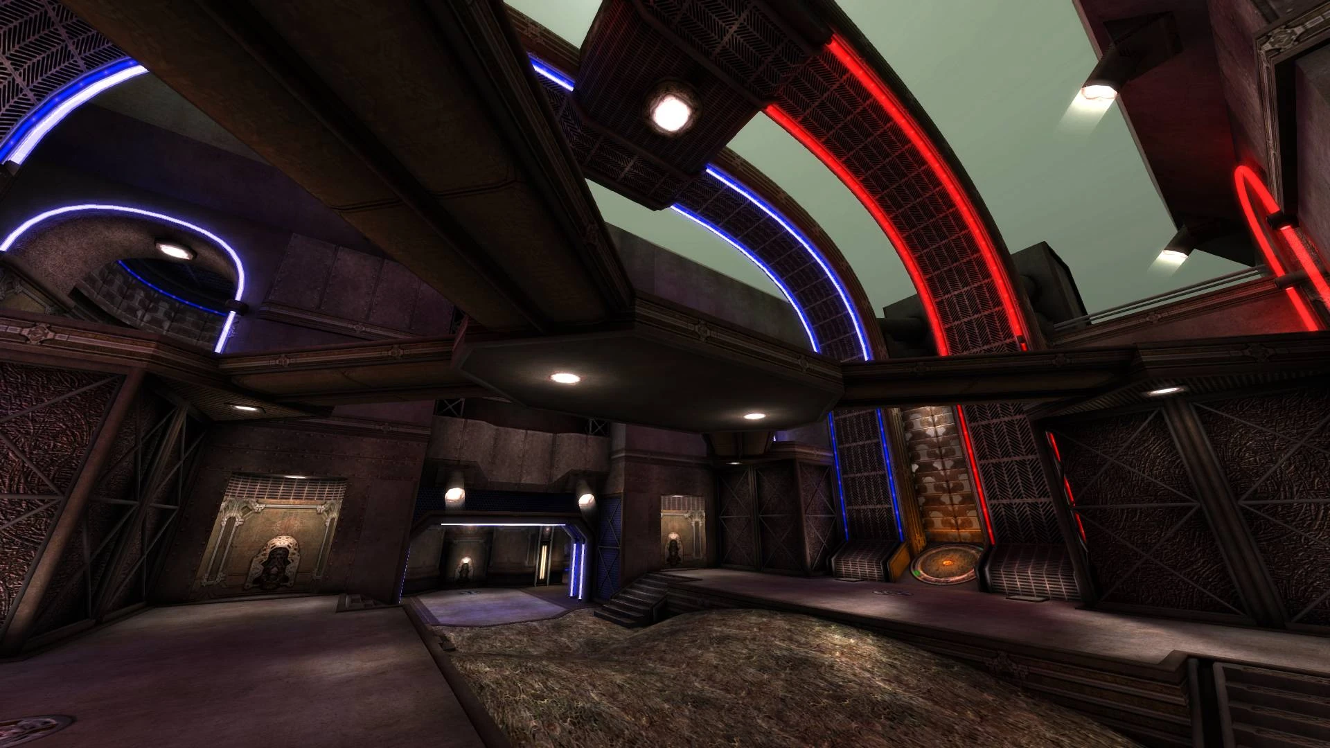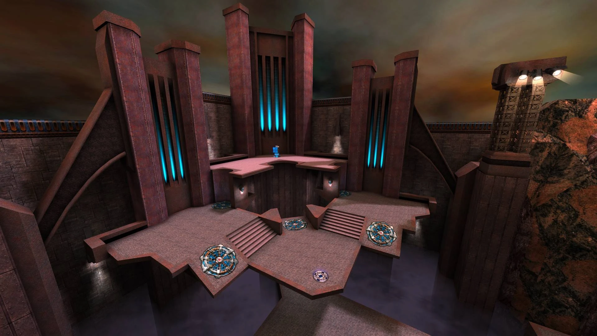 Maps have neutral command points layout, two team fight over the control of the area. Teams must hold a series of command points to score. Pickups removed throughly from the map. Each player only picks 1 starter weapon out of 6 available beside their standard Gauntlet and spawn stocked with 100 health and 100 armor.