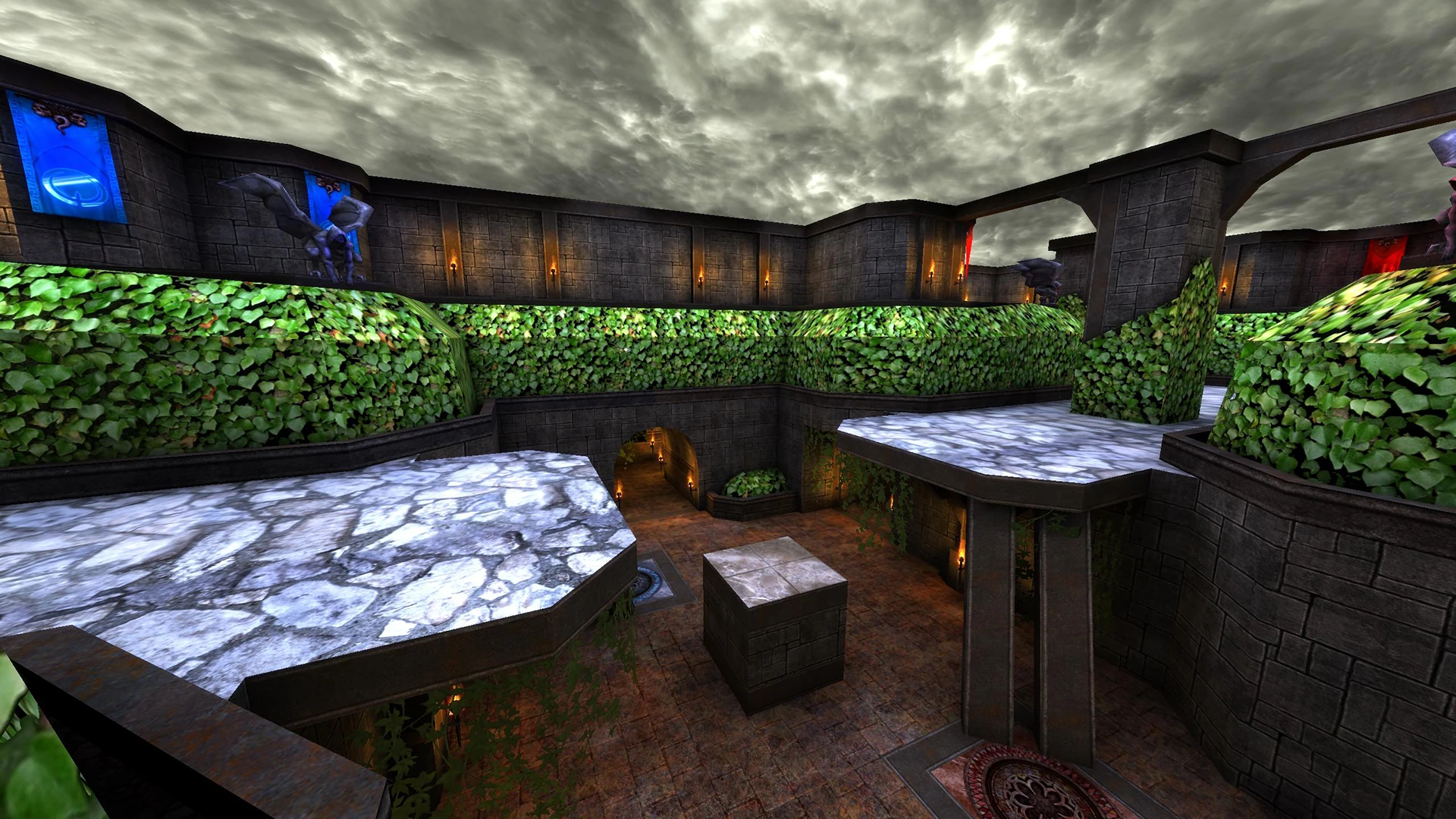 Like Clan Arena but instead of getting entirely removed from the game upon death, players freezes in a stature when got fragged by another. Teammates can crush that stature to thaw frozen player(s) back into the game by standing nearby long enough, causing you to respawn and help in combat. Players can pick an extra starter weapon out of 6 available and each player spawns with 100 health and 100 armor.