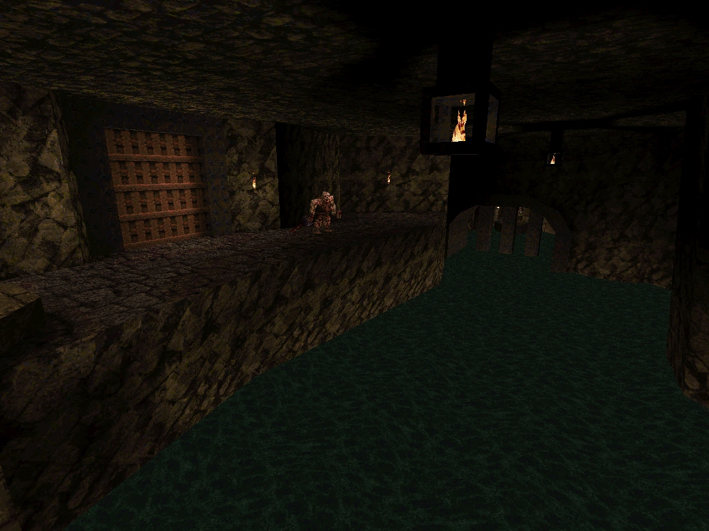 Deviant's Domain is the first level of Hell's Fortress. The level can be described as a loop - the player has to solve a few simple puzzles and defeat a number of vicious enemies in order to extend a bridge to the level exit, which is located close to the start. An interesting feature of this map is the boat ride through a lake of Slime.