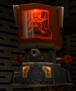 | “ | An almost completely robotic brute, controlled by a brain that floats around inside it’s metal body in a red preserving fluid. This creature moves about by hovering on four jets that sit under its body and is equipped with three weapons: a shocking prod, a flesh-ripping claw, and a laser blaster. Use energy armor if you’ve got any. | ” |