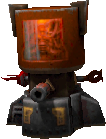 In Quake II, a Technician is a floating mechanoid, comprised of two halves; the upper half is a transparent tube, containing a head or brain floating in a red liquid, cybernetically linked to a respirator and all of its other equipment. Its lower half is purely mechanical, sporting a hyperblaster for ranged attacks (much weaker than the hyperblaster available to the player, thankfully) and two tool arms - a utility claw and an electrical prod of sorts, which the Technician can use as improvised weapons.