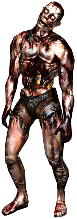 In Quake 4, there are two types of Zombies: Slimy Transfer and Failed Transfer. As their names suggest, they're partially Stroggified humans deemed unusable by the Strogg and more or less dumped into the Waste Facility and forgotten about. Slimy Transfers behave like typical zombies; they puke acid and eat flesh. Failed Transfers are shambling, partially-stroggified humans armed with a Shotgun. Both types were made through botched attempts at Stroggifying humans and were sent to the Waste Processing Facility to be destroyed. Both can still pose a threat even when they are cut in half. Some are contained in green barrels. If you see them opened or being opened in areas like the Waste Processing Facility, expect to meet the Zombies.